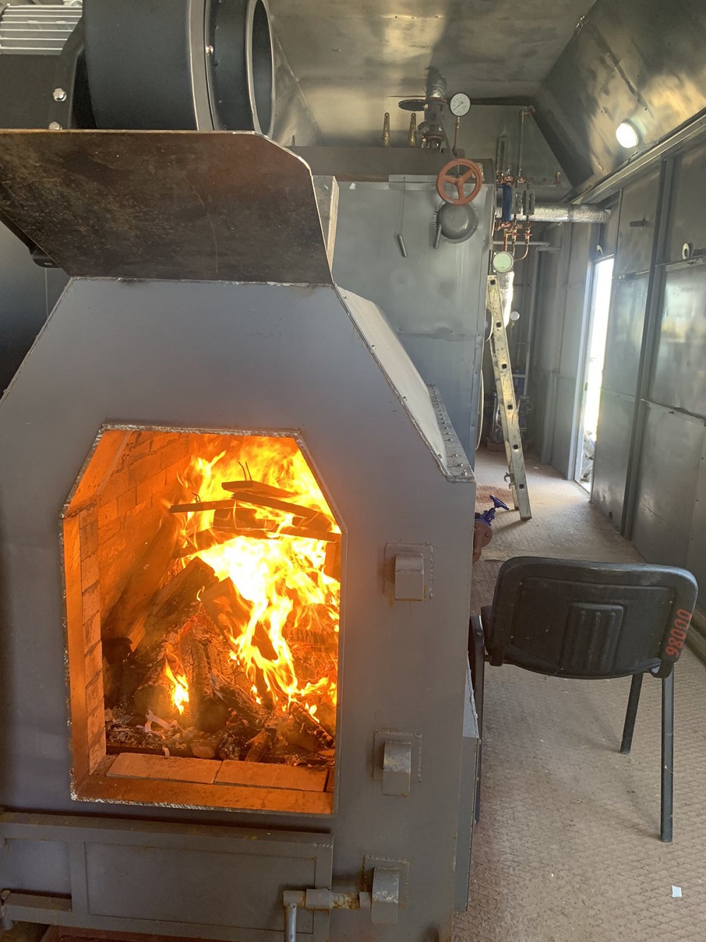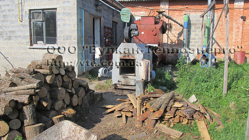 Завод по производству пластмассовых изделий (Киевская обл.). Возле действующей газовой котельной установлен котел Е-1,0-0,9 + предтопок ВТЕ-ТП-0,7. Газовая котельная отключена. Топливо – свежесрубленные дрова. Котел работает в режиме 5,5 Атм.