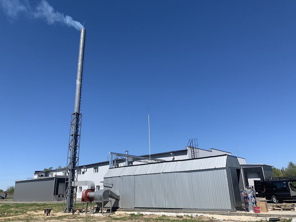 Новая котельная - г. Днепропетровск. Предприятие по производству пенопласта. Возле здания производственного помещения построено из легких материалов здание паровой котельной на биотопливе (дрова, брикеты с лузги, пеллеты) производительностью 5 тонн пара в час (3.6 Мвт). В котельной установлен паровой котел Е 2.5/0.9 в комплекте с твердотопливной горелкой(предтопком, сжигателем) на биотопливе. Также установлен аккумулятор пара, водяной экономайзер БВЭС-1-2.